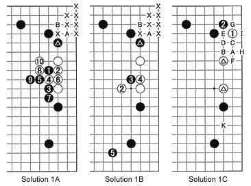 At the same time, it gives you a good idea of the real value of black 1 in Problem 1 or white 1 in Solution 1C. The difference could easily be 20 to 30 points (depending on surrounding circumstances).