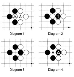 Diagram 3: After capturing the white stone, the situation looks like this.