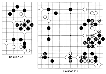 Solution 2B: (white 12, black 15, white 18, black 21 in ko, black 25 connects where the marked white stone is)