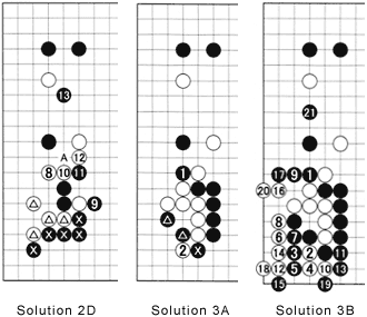 Solution 3A: You were asked what Black should do if White cuts at 2. He should not lose the triangle-marked stones, or even worse, the stone marked with a cross.