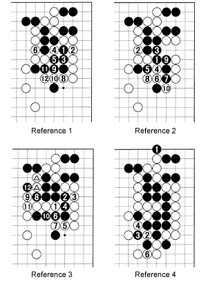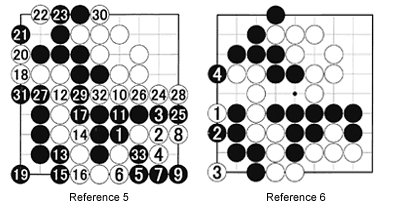 Reference 6: White 1 and 3 look clever, but black 4 connects his groups.