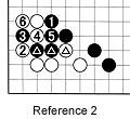 Reference 2: Wrong! In response to the marked white stone, black 1 is a problem move. This allows White to play at 2, and if Black blocks with 3, to cut at 4. As this is atari on the black marked stones, Black has to connect at 5 and White can then play at 6. Clearly, Black has failed.