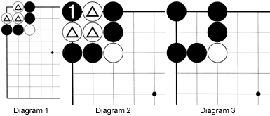 Diagram 3: This is what the situation looks like after black 1 in Diagram 2.