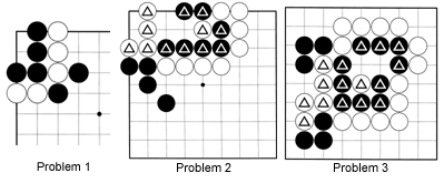 The answers to these problems will appear next week. But you can find out tomorrow at Ben's Cafe in Takadanobaba (Tel. 03-3202-2445 or www.benscafe.com) where the English-speaking go community (Japanese welcome) congregates every Sunday starting at 11 a.m. You can enjoy free lessons until 1 p.m.
