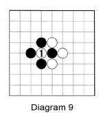 Diagram 1: Black plays the first move. He can place his stone wherever he wants, even in the corner.