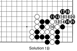 Solution 1B: If White connects with 10 (where he captured black 1), black 11 and later moves capture him in a ladder. White is helpless.