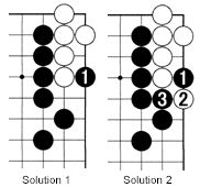 Problem 2: It is Black's turn. How can he kill the white group?