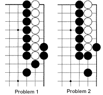 Problem 2: If you failed to solve the above problem, you get another chance to correct it here. In this situation, Black has two possible solutions for killing White. Try to work them out.