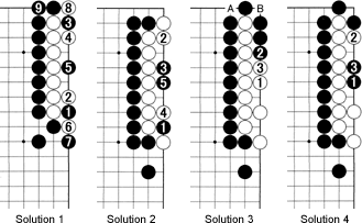 Solution 4: Black 1 and 3 are correct. Black should not play his first move at 2. See Solution 3 for White's counter.