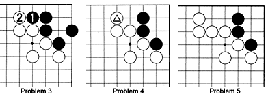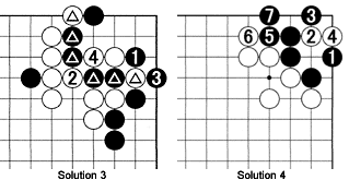 Solution 4: Black 1 is the move to make this black group alive. White 2 is of no avail due to the combination of black 3, 5 and 7. Black now has two eyes.