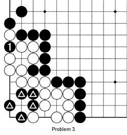 Problem 1: This situation is part of a joseki. White can now play 1 and 3 hoping to fool Black. Black 4 and 6 is the correct response. Why?