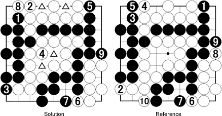 Try different combinations for yourself, and you will see Black can win only if he first plays his sente moves 1 and 3 in the Solution.