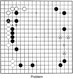 Solution 2B: Even if White extends to 2, 3 expands the borders of Black's territory to the crosses, for a total of 35 points, an increase of 12 points. He also threatens to invade at A.
