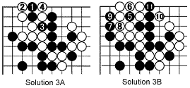 Solution 3A: Black 1 is a good move before the semeai (capturing race).