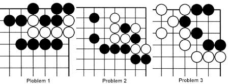 Problem 2: Black plays first and kills the white group. Hint: Don't be too greedy.