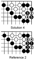 Reference 1: Black 1 and 3 look like the right combination, but it does not work, as the moves through 8 show.