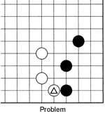 Solution 3B: The players read the board a little deeper than this. After black 1 (black 21 in Solution 3A), white 2 is an excellent move, considering that only 30 seconds were allowed per move. Thinking about it overnight, Cho came up with the combination of 3, 5 and 7. This made a ko, and any ko threat after that would win the game for Black.