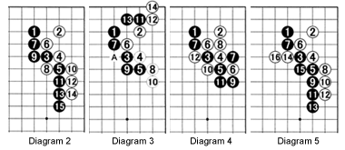 Diagram 4: What is the worst that could happen? Maybe you believe it is Black's capture of a stone with 7 and 9. However, in the sequence through 12, White captures a stone because of a double atari at 10 and gets the better part of the deal.