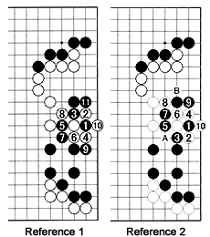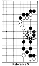 Reference 1: Sometimes, after black 1, white 2 is correct, but in this case, after White cuts with 8, Black captures him with 9 and 11.