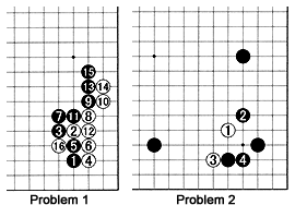 Problem 2: To reduce Black's sphere of influence, White plays 1 and 3. Black 4 gives White no chance to create complications. How should White proceed?