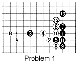Problem 1: Something is wrong in this sequence even if it looks natural. Use tewari to establish what the problem is. A joseki dictionary or research on the Internet may help.