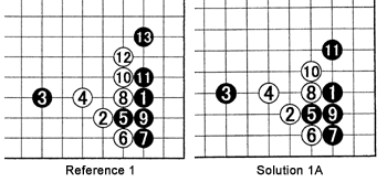 Reference 1: The problem posed last week is analogous to the result through 13. For Black, this is inferior to Solution 1A, because he jumped to 13 one move late. Therefore, tewari and comparing this to Solution 1A tell us there is something wrong with this diagram.