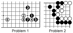 Solution 1A: In this game between Yoo Chang Hyuk (Black) and O Meien, both top pros, the following pattern appeared after White played the marked stone. Note, White's stone in the corner is not dead yet; White can play at A, followed by black B, white C, black D and white E, which starts a ko.