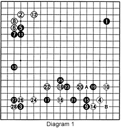 Have a look at Diagram 1 and try to find a Black response to white 28.