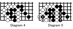 Diagram 4 shows a semeai with Black having three and White four liberties.