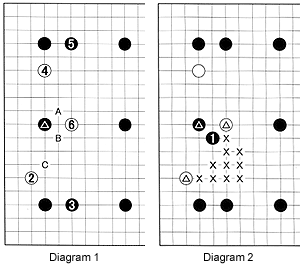 Next week, we will look at what happens when Black plays at C in Diagram 1. This will initiate a great fight.