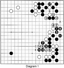 Problem 1: Look at Diagram 2. Why did Black add a move at 10? Before black 10, could the white stones have escaped? Instead of 10, where should Black have played?
