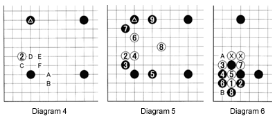 Problem 1: Instead of black 4 in Diagram 6, Black can also play at 4 as shown here. How should White respond?