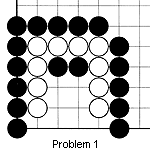 Problem 1: White to play first and make life. Because of the limited number of possibilities for the first move--only four in total because of the symmetry--this is not a difficult problem. However, even for fairly strong players this problem holds a blind spot.