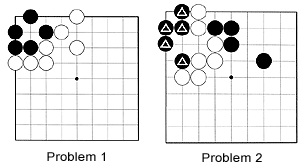 Solution 2: Black's marked stones are in danger. His last resort is to start a ko by playing at 1. White will capture the ko first, but at least Black has a chance to free his stones.