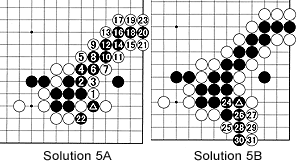 Solution 5A: White should cut with 1. Black can play the ladder out all the way to move 20, but after white 21 and 23 he is in atari.