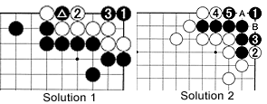 Solution 2: Black 1 is the correct move to make two eyes. With correct defense at 3 and 5, A and B are always two eyes.