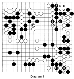 Diagram 1: (White 6 captures the ko below black 3; black 9 captures the ko at 3.) Last week, we had a look at this game between two top pros.