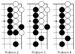 Problem 2: It is Black's turn. How can he kill the white group?