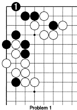Problem 1: In the upper left quadrant, this situation appeared much later in the game. How should White answer black 1?