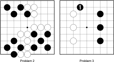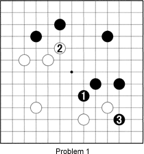 Problem 1: After black 1 and white 2, Black invades with 3. How should White respond?