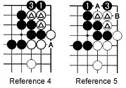 Reference 2: To avoid the above situation, White could play 2 and 4. However, Black would gain two more points than in Reference 3.
