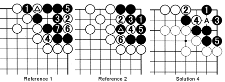 Solution 4: Black 1 is correct. The elegant combination 1, 3 and 5 give the black group two eyes as White cannot play at A.