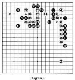 Problem 1: After studying References 1 to 3, try to determine how both Black and White should continue after black 41 in Diagram 3.