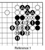 Reference 1: To verify that Black cannot capture White's stones in any other way, let us look at black 1, the most direct approach. The moves through 4 are unavoidable. Black cannot stop White now, but if he tries, such as with a ladder, he will collapse after White captures with 12.