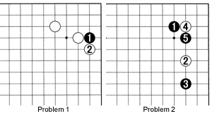 Problem 1: Black 1 is a probe. If White responds with 2, where should Black play next?