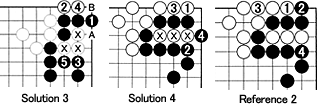 Solution 5: The last week's Problem 5 was to find the right move to attack White's upper left corner, and the solution is Black 1 in Diagram 2.