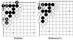 Problem 1: Using the technique demonstrated in Reference 3, where should Black play to kill the white stones?