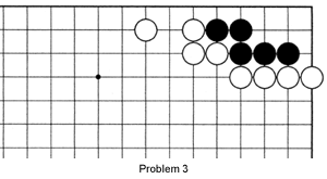 Problem 3: Where should Black move to ensure life? Refer to this and last week's solutions for similarities and watch out for damezumari (shortage of liberties).
