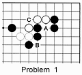 Problem 1: There are a variety of cuts here--at A, B and C. Which cut is most important? Where should Black play his next move?
