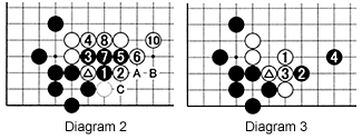 Diagram 1: This sequence provides a classic example of a light shape. Through 10, White plays great forcing moves. But white 11 is the move that separates the wheat from the chaff. Defending tightly with a move at A would be far too heavy.